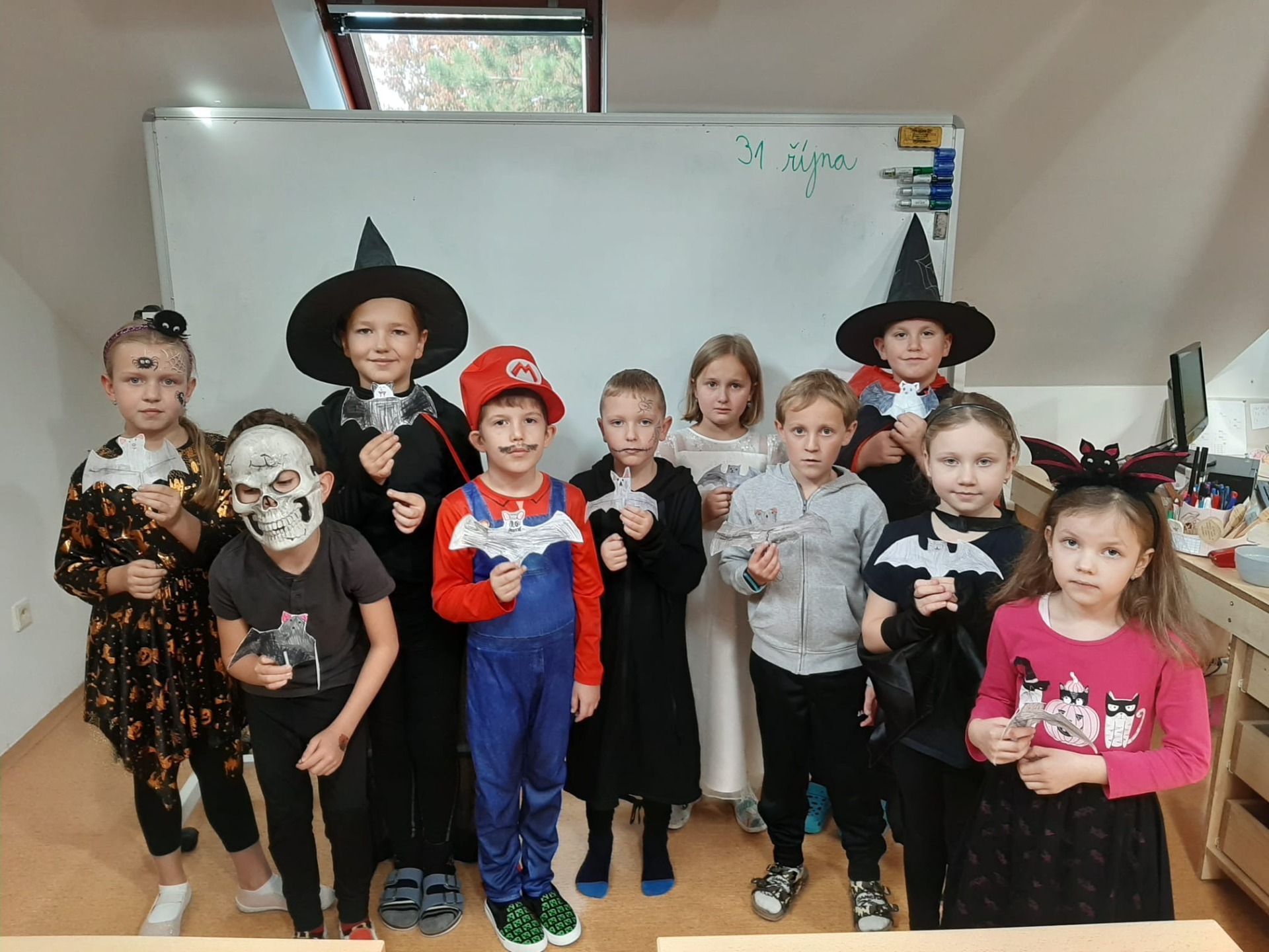 K našemu malému halloweenu se přidali i třeťáci a páťáci a vyrobili si k tomu kamarády netopýry.