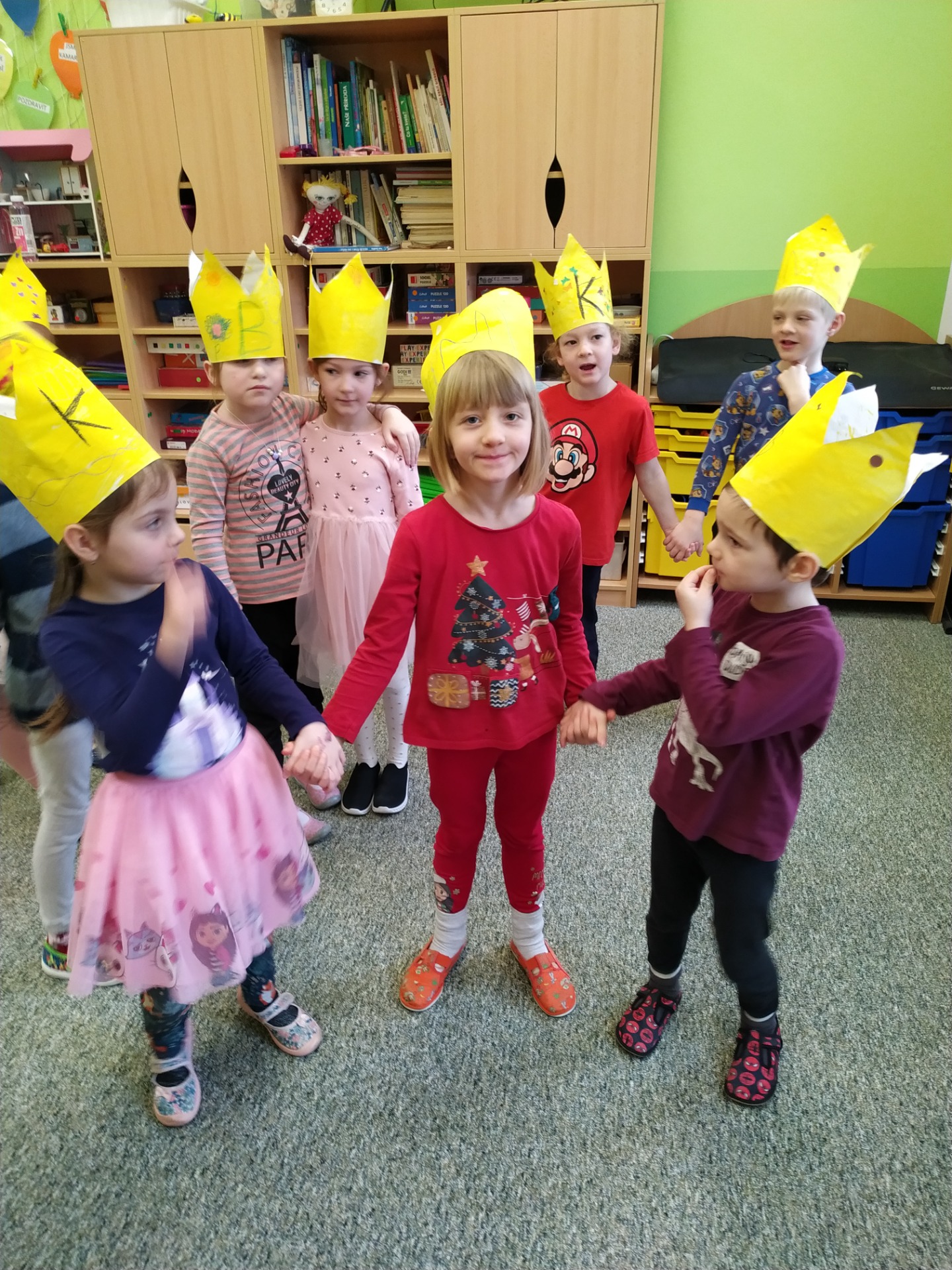 V lednu děti z mateřské školy navštívily místní kostel, kde si prohlédly krásný dřevěný betlém. Povídali jsme si o vánočním příběhu a zejména o Třech králích – kdo byli, odkud přišli a jaké dary přinesli malému Ježíškovi.