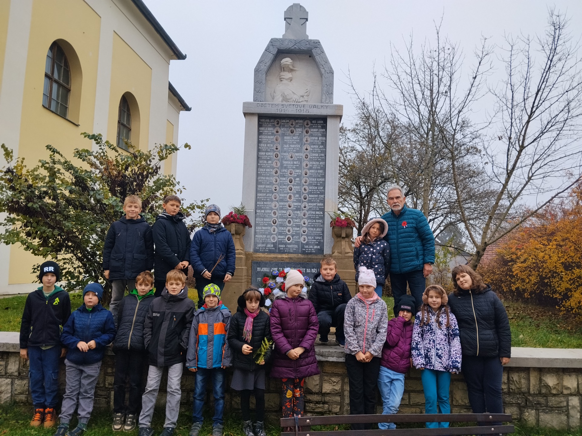 U pomníku 1.sv. války se žáci dozvěděli základní informace o 1.sv. válce a o boleradických mužích, kteří padli za Rakousko-Uhersko, jehož jsme byli v té době součástí. Zapojili se i do úpravy pomníku květinovou výzdobou. Potom se přešlo na konec Pastýřské ulice, k rodinnému pomníku Antonína Čermáka, který zemřel na následky zranění v roce 1915 v Užhorodě na východní frontě. Zde položili kytičku a zapálili svíčku. Tak žáci 4. a 5. roč. naší školy letos 11.11. vnímali a vstřebávali události 1.sv. války