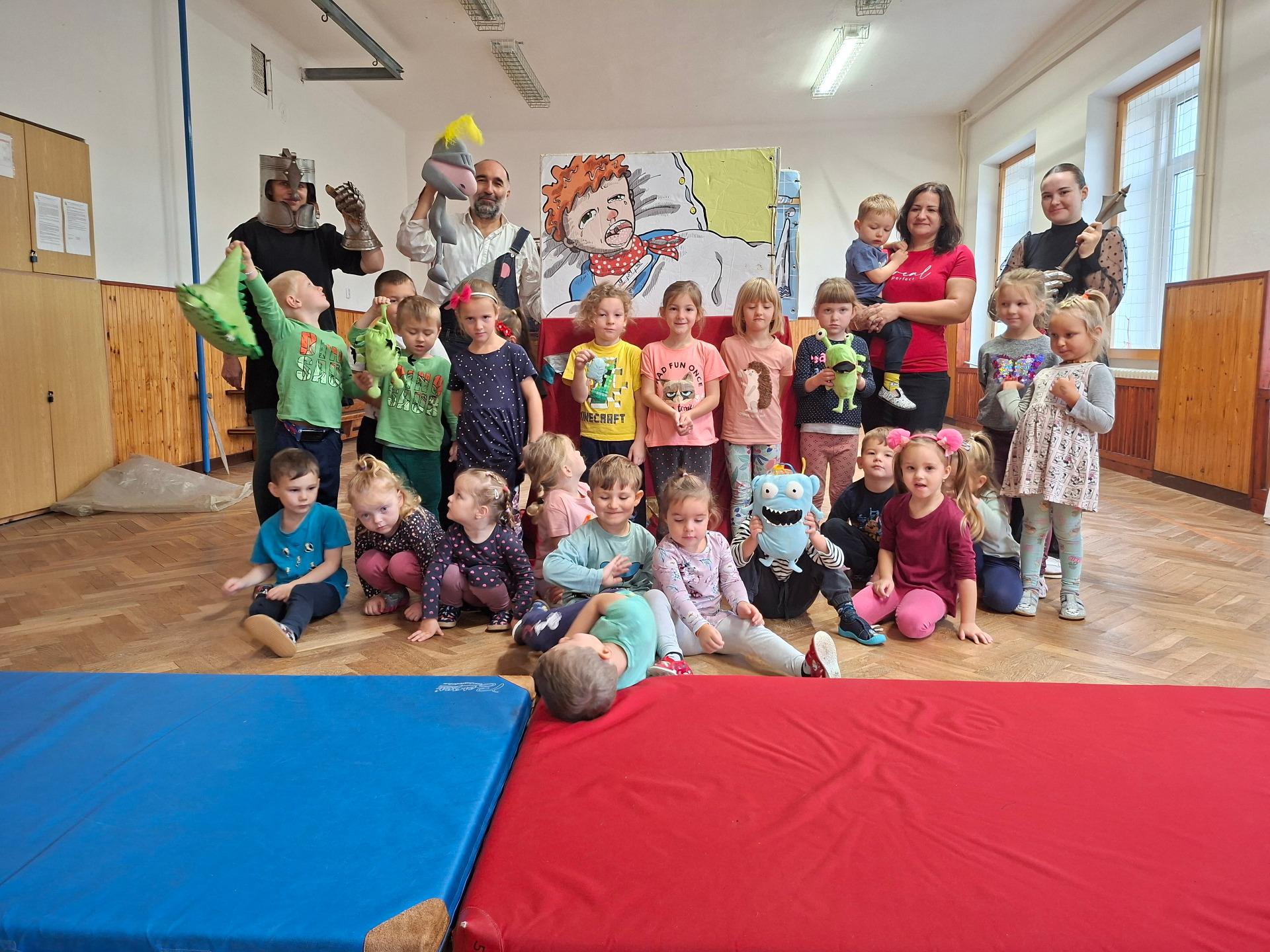 V pátek naši mateřskou školu navštívilo Divadlo Koráb s představením "Jak rytíř s rýmou zatočil". Děti se aktivně zapojovaly do děje a měly možnost stát se součástí příběhu.