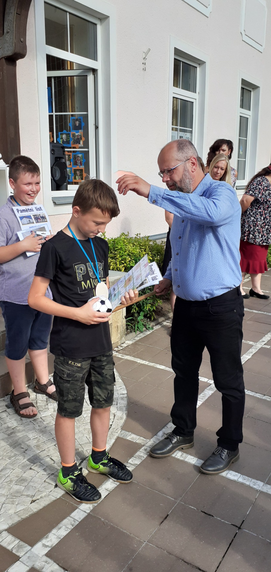 Úterní ráno 28. června 2022 začínalo slavnostně před budovou školy. Paní ředitelka zhodnotila uplynulý školní rok, který byl pro naši školu úspěšný. Žáci reprezentovali školu na soutěžích, vystoupeních a získali spoustu nových znalostí. Po předání pochval třídního učitele a ředitelky školy, bylo velké loučení s odcházejícími páťáky. Pan starosta je vyslal do světa a popřál jim hodně úspěchů v další cestě životem. Všem žákům popřál krásné a dlouhé prázdniny.