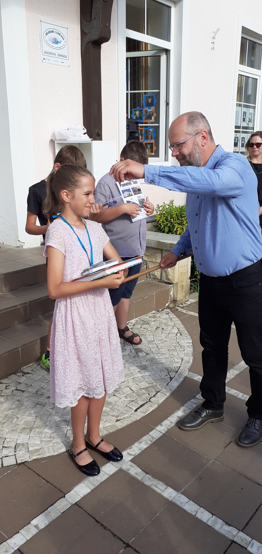 Paní Lucie Rosívalová z firmy Hamburger Recycling předala ředitelce školy odměnu za 1. místo v soutěži škol ve sběru papíru. V soutěži jednotlivců získala 1. místo Natálie Veselá ze čtvrtého ročníku.