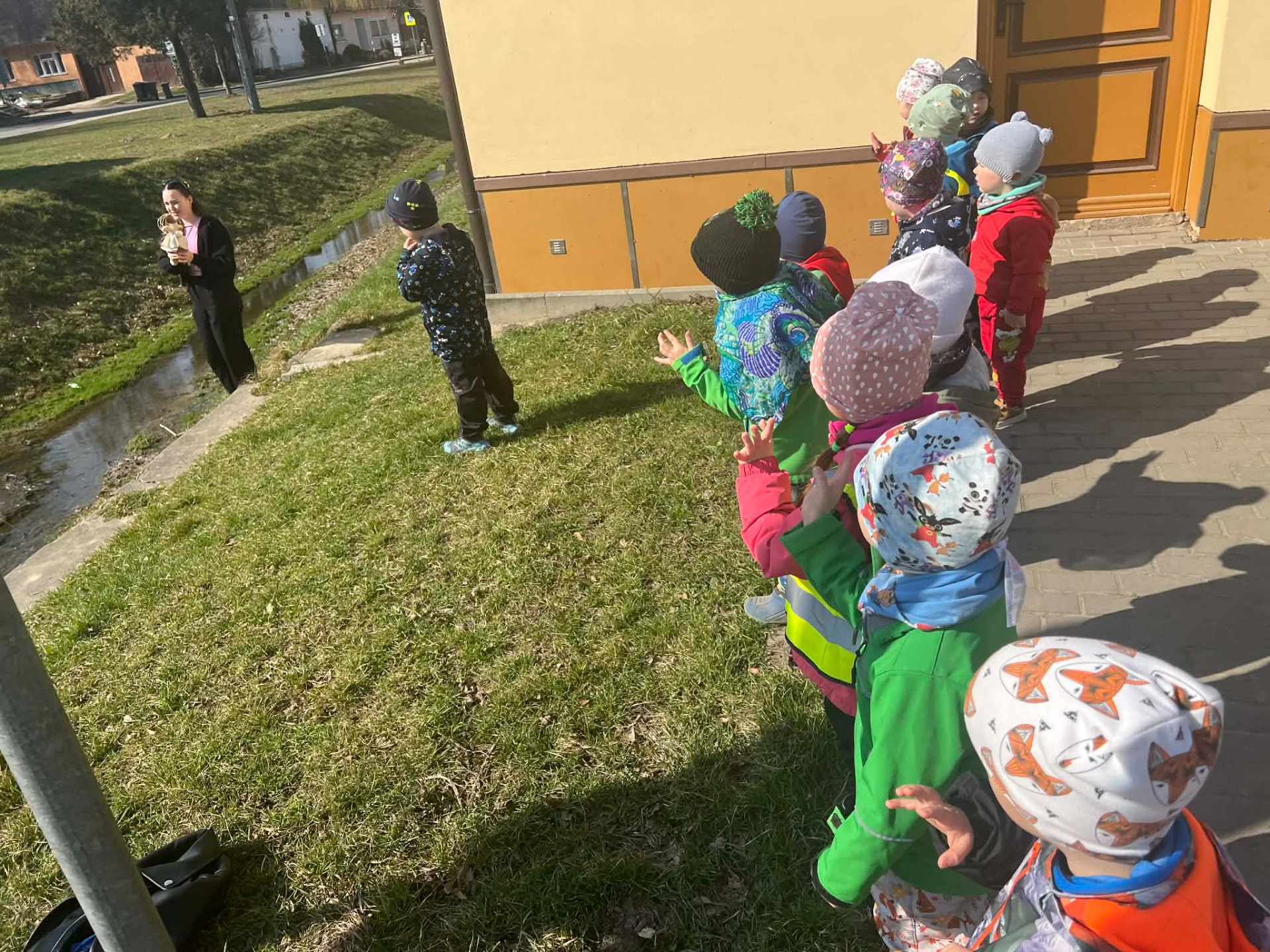 Když byla Morena hotová, vyrazili jsme na vycházku k potoku. Tam jsme ji za zpěvu písně o Moreně symbolicky pustili po vodě a tím se rozloučili se zimou. Následně jsme si společně přivolali jaro.