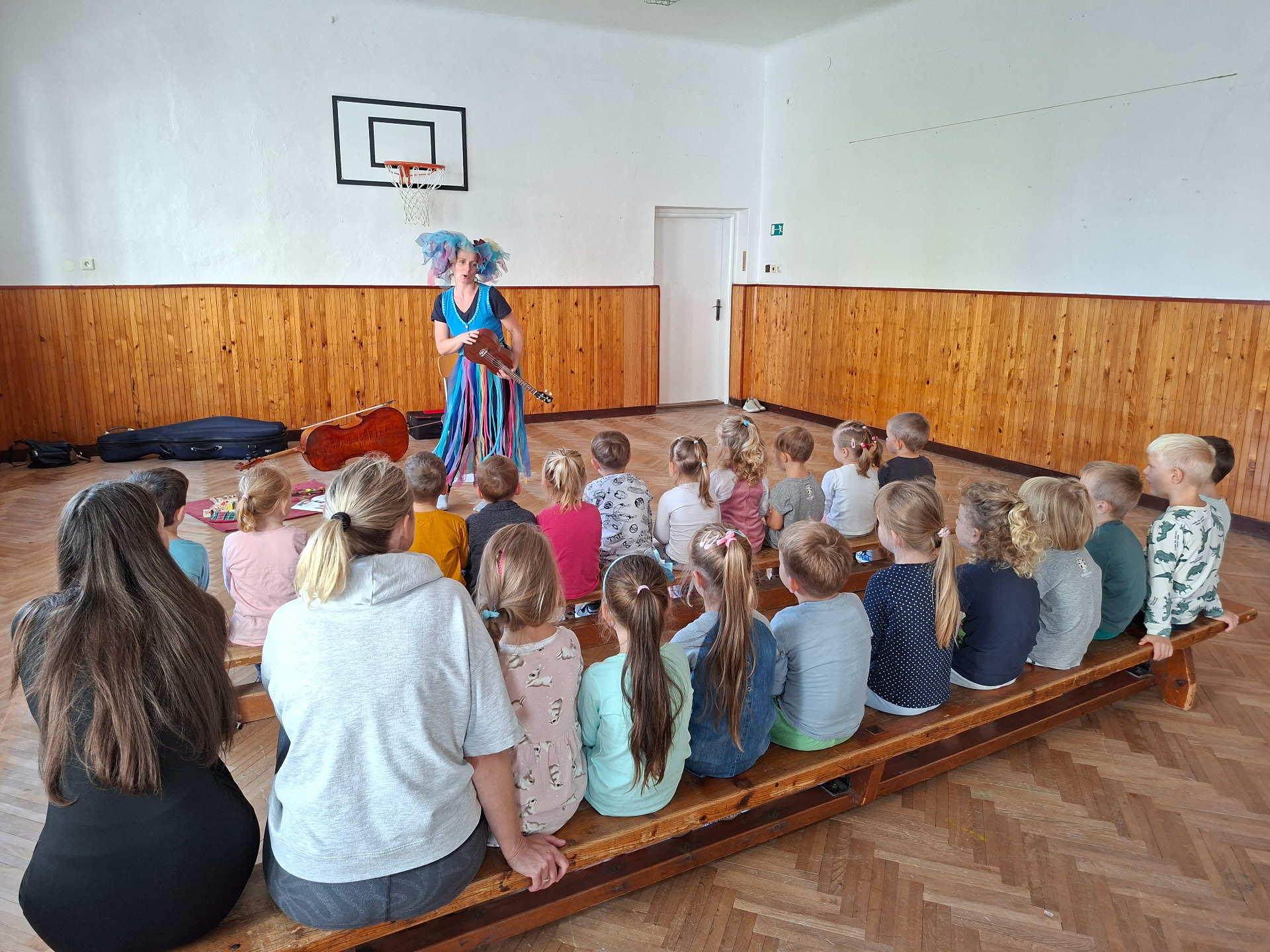 V úterý 30.9. nás navštívila Žůžo Muzička s hudebním představením, na motivy veršovaných pohádek Františka Hrubína, které se dětem moc líbilo. Prolínal se zpěv i hra na hudební nástroj. Děti se aktivně zapojily do programu hlasovým projevem, hrou na různé hudební nástroje i pohybem.